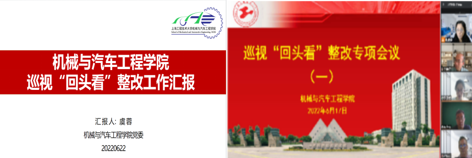 机械与汽车工程学院党委高度重视巡视“回头看”整改落实工作,严格按照巡视反馈报告要求,坚持做到“四个融入”,切实将巡视整改作为带动全员转变思想观念,推动学院治理体系优化与完善的有效抓手,确保巡视反馈意见全面整改落实,持续推进学院发展瓶颈问题的解决,努力促进学院科学、健康、可持续发展。