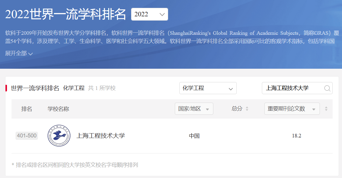 近日,高等教育评价专业机构软科发布2022“软科世界一流学科排名”,我校化学工程学科进入榜单。