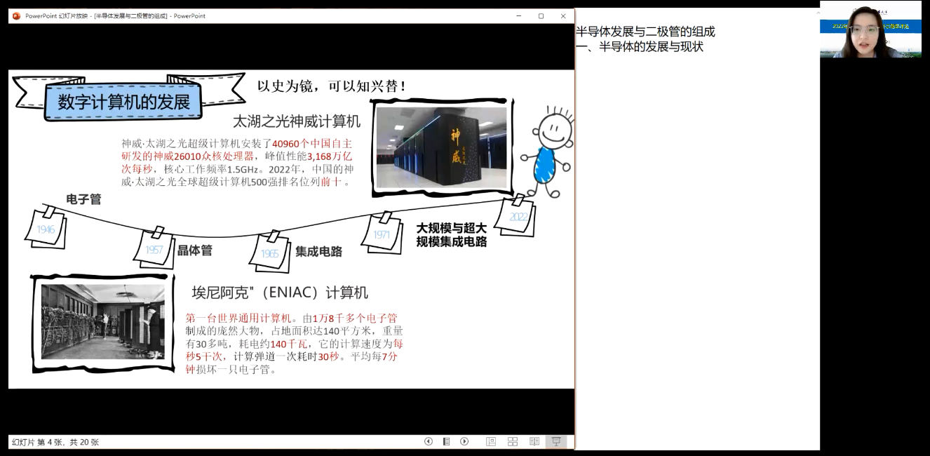 电子电气工程学院孙雨晴老师主讲《模拟电子技术》的课程定位非常清晰:作为电子技术入门专业基础课,着力于促进学生对行业发展背景的深入了解、帮助学生明确专业学习目标与定位,激发学生对专业课程的学习热情。因此,孙老师在教学中,重点使学生获得模拟电子技术方面的基本理论和技能,以科学素养、个人品格塑造和家国情怀为切入点,为实现此育人目标,孙老师应用线上线下混合式三段学习法,合理安排课前、课中、课后教学计划。课前教学活动以激发学生学习本节知识兴趣为目的,课中以知识点讲授为主体,将知识点与思政有机融入,从知识点中扩展思政内容,并通过思政反向促进知识点的记忆与理解。课后着重进行知识细化与吸收,不断提高教学质量与效果。