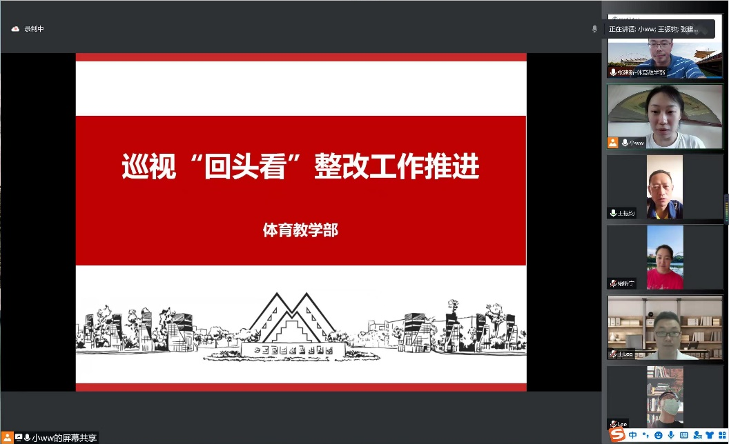 体育教学部党总支高度重视市委巡视组的反馈意见,把巡视整改作为当前一项重大政治任务、一项重中之重工作来抓。6月17日至今,先后11次召开党总支委员会会议和党政联席会议,专题研究推进部门巡视“回头看”整改工作,同时会同相关职能部门开展专题研讨,确保整改举措务实可行,整改工作取得成效。第一时间制定《体育教学部巡视“回头看”整改工作方案》,成立整改工作领导小组和工作专班,建立部门整改工作台账,进一步明确责任,切实加强综合协调、督促检查,形成工作合力。召开部门巡视“回头看”整改工作动员会,向全体教职工传达学校党委关于巡视“回头看”整改工作会议的精神和巡视整改工作部署,推进体育教学部巡视“回头看”整改工作。