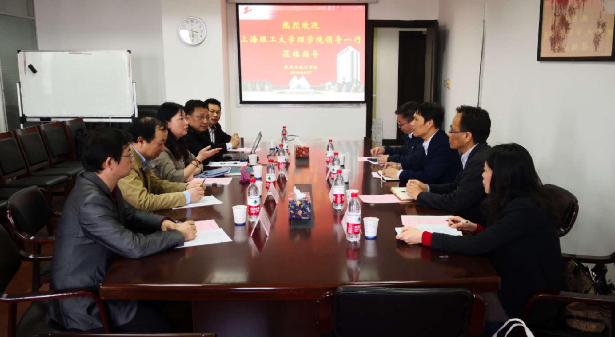 4月17日下午,上海理工大学理学院院长魏国亮,副院长卜胜利、章国庆,办公室主任王丹琼等4人来我校数理与统计学院开展调研交流,校党委书记李江热情接待了魏国亮院长一行人并进行了亲切交谈。