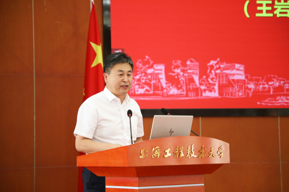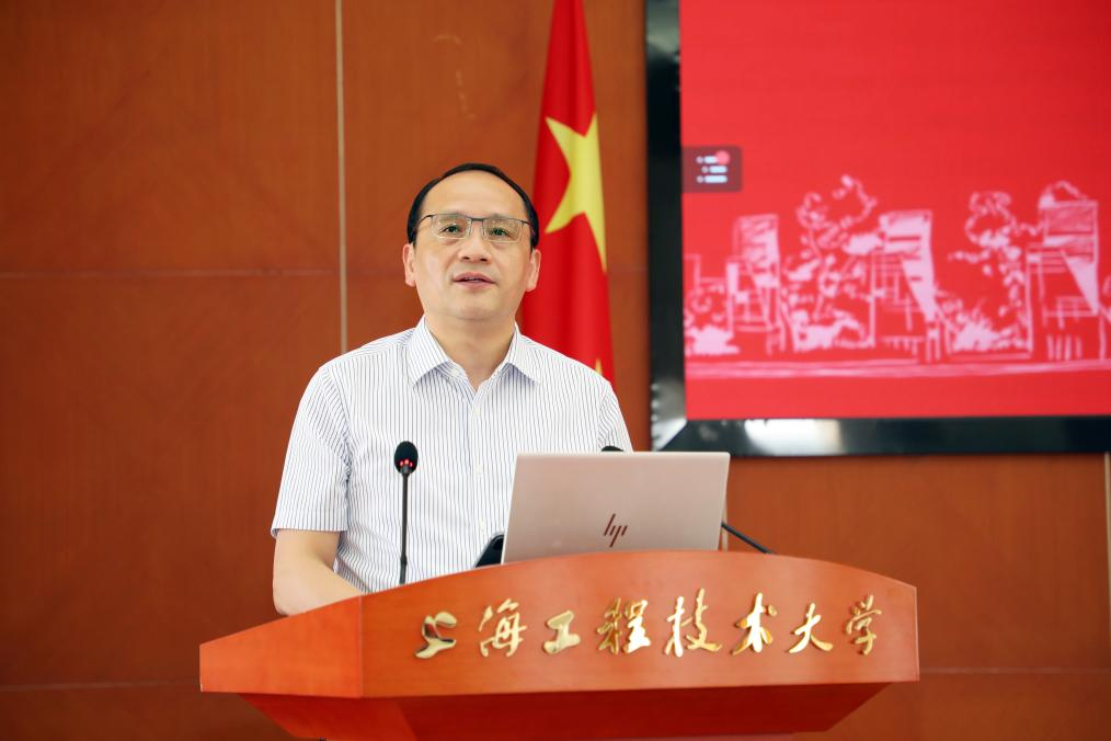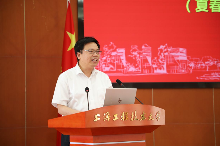 副校长夏春明宣读表彰决定并为“勠力同心守护程园,打赢大上海保卫战”上海工程技术大学抗疫先进个人获奖代表颁奖。