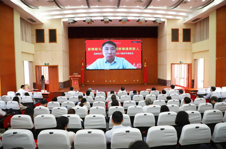为表彰先进、学习先进,团结引领广大教职员工为学校教育事业发展凝心聚力、接续奋斗,9月16日下午,学校在行政楼B301举行奋楫献礼二十大·培根铸魂育新人——迎接党的二十大暨庆祝第38个教师节表彰会。校党委副书记、校长俞涛,党委副书记、工会主席史健勇,党委副书记、纪委书记门妍萍,党委副书记、副校长朱晓青,副校长王岩松、夏春明,校党委常委、党委组织部部长朱洪春,校党委常委、党委宣传部部长徐阳出席会议。各职能部门、各院(部)中心、直属单位党政负责人,获奖集体和个人代表、教师代表及学生代表共计300余人以线上线下形式参加了表彰会。表彰会由史健勇副书记主持。