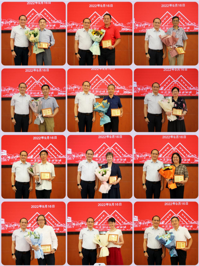 校党委副书记、工会主席史健勇宣读表彰决定并为2022年从教满三十年教师及从事教育工作满三十年的教育工作者获奖代表颁奖。