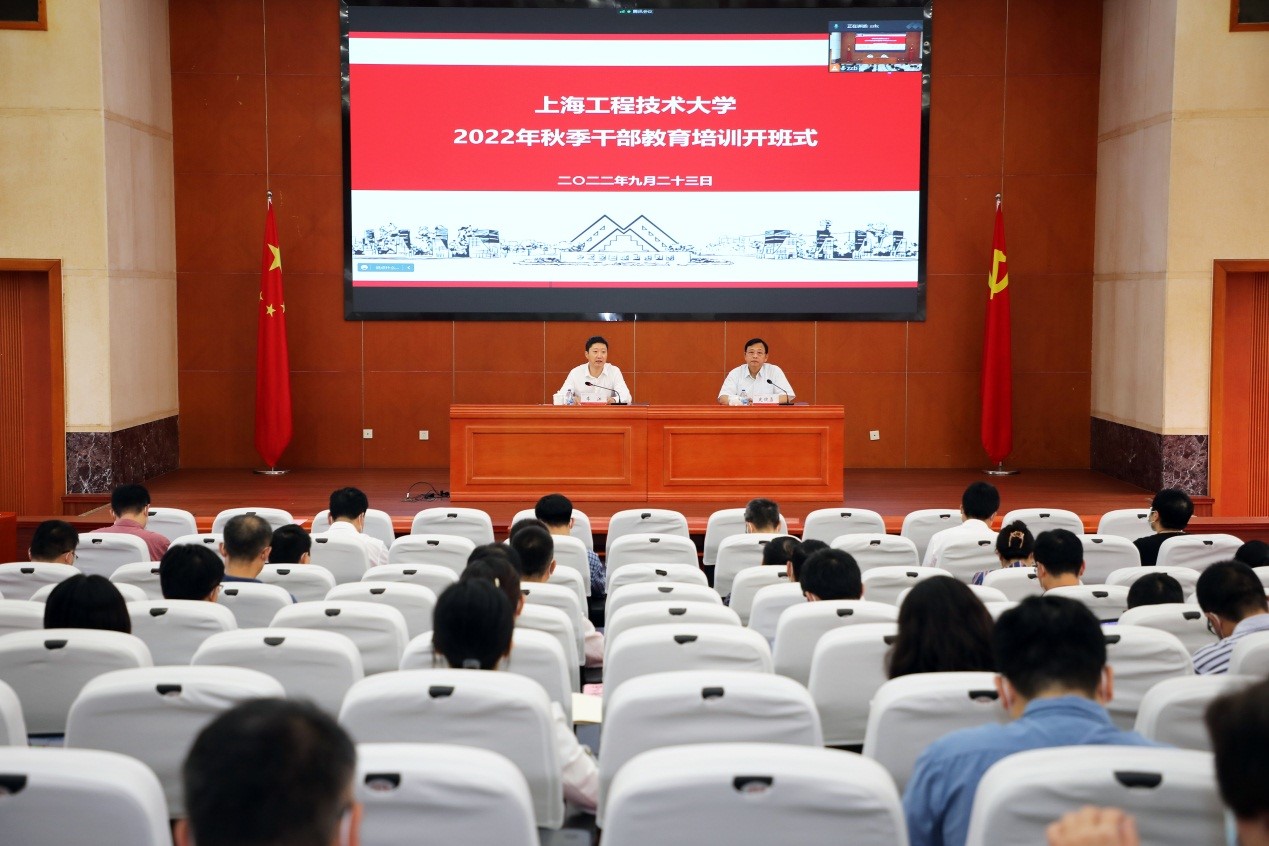 为进一步加强高素质专业化干部队伍建设,9月23日上午,上海工程技术大学2022年秋季干部教育培训开班式在松江校区行政楼B301会议室召开。会议采用线上线下结合方式举行,校党委书记李江出席并作动员讲话,校党委副书记史健勇主持。开班式后,市委党校(上海行政学院)周建勇教授应邀为全体学员作《习近平谈治国理政》第四卷导读,全体中层干部参加培训。