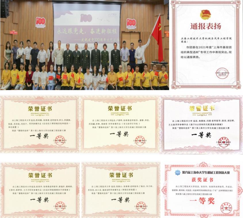 学院党委对标新时代党的建设新要求,坚持党建与业务同频共振,推进全面从严治党主体责任落实到位。夯实基层党组织建设,全面推进“双带头人”机制建设;创新支部设置新模式,成立车迷俱乐部党支部、学生科创中心机械创新党支部。学院汽车人科创中心获“2016年上海市大学生年度人物”提名奖,2019年汽车工程系党支部成功入选“全国党建工作样板支部”,学院党委同年获上海市教卫党委“先进基层党组织”,2021年获得上海市教育系统“关工委首批先行先试基层组织”;车迷俱乐部党支部2021年获上海市教卫工作党委“党支部建设示范点”。