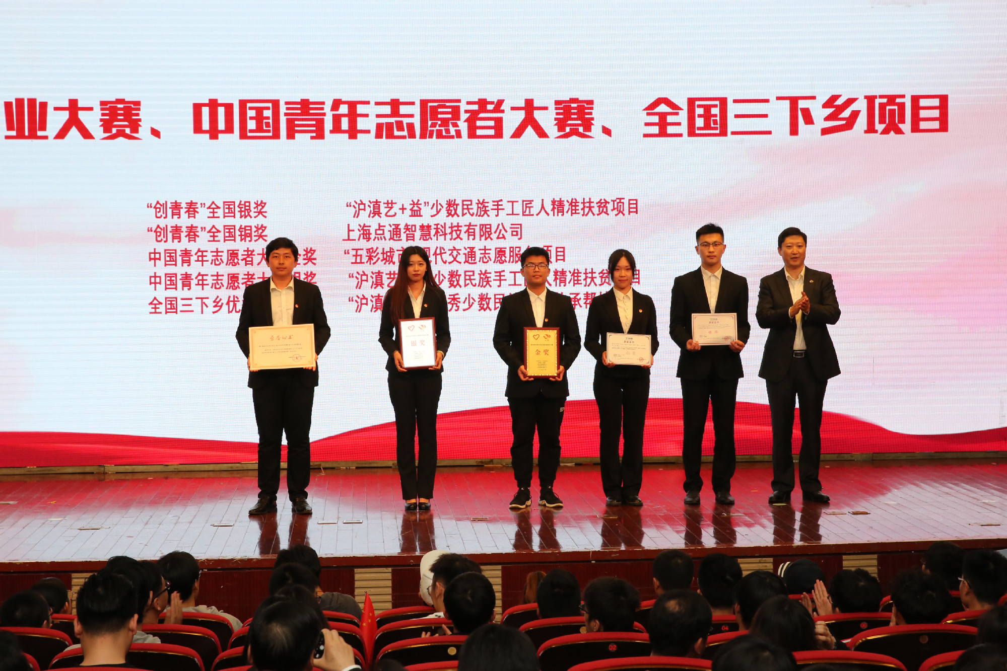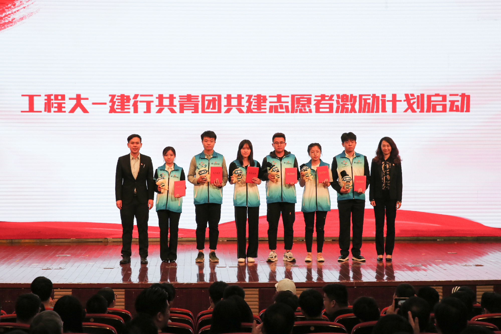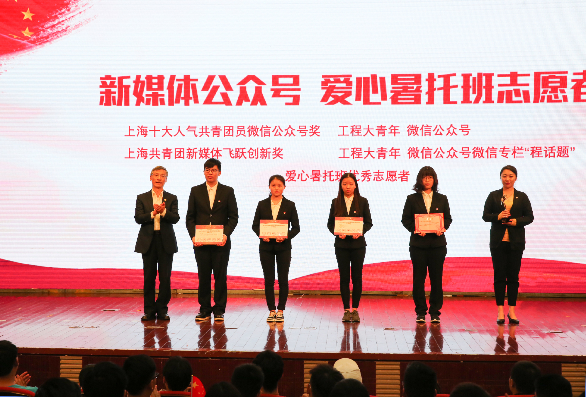 会上,校领导对一年以来荣获全国、上海市和校内重要荣誉的个人及集体进行了颁奖。会议启动了学校与松江团区委共建的“大学生赴街道长期挂职项目”;启动了学校与建设银行上海市分行共建的志愿者激励计划;会上正式发布了工程大志愿服务动漫形象、“智慧公益”志愿信息平台,以及工程大青年志愿者原创主题曲《程志之心》;国旗班成员、青年志愿者代表、社会实践项目代表以不同的形式进行了展示与分享。