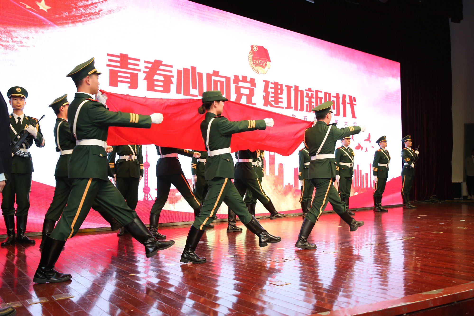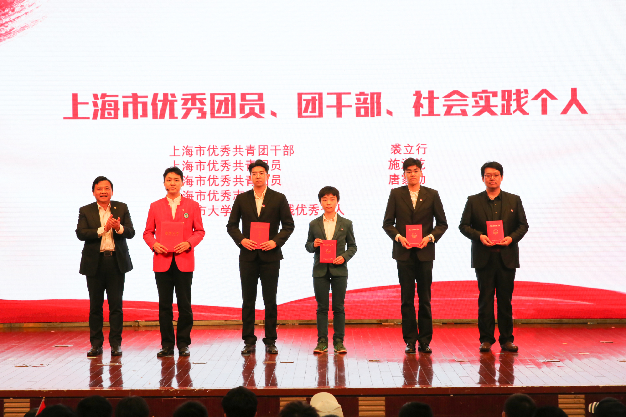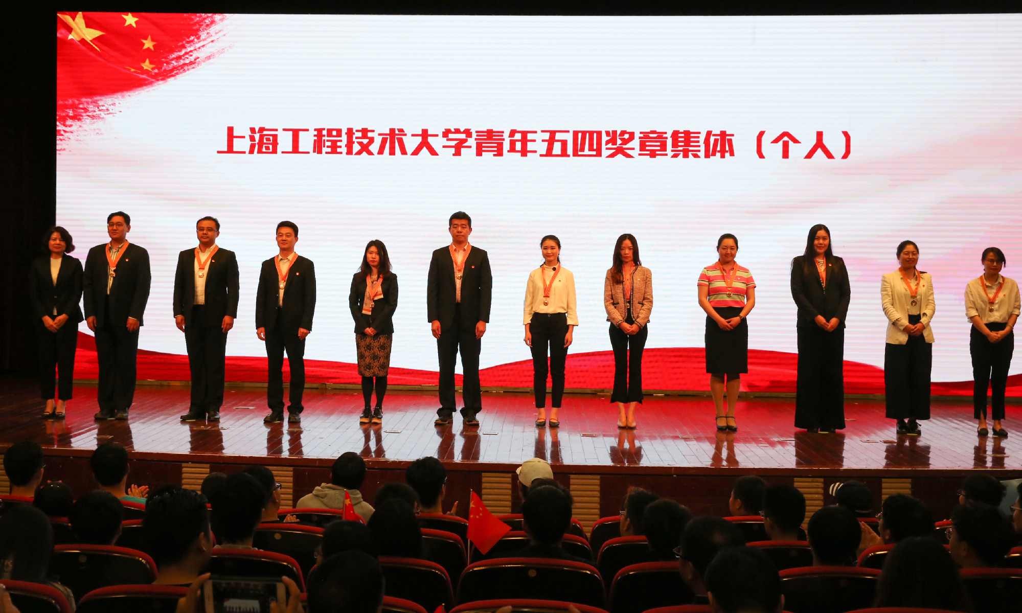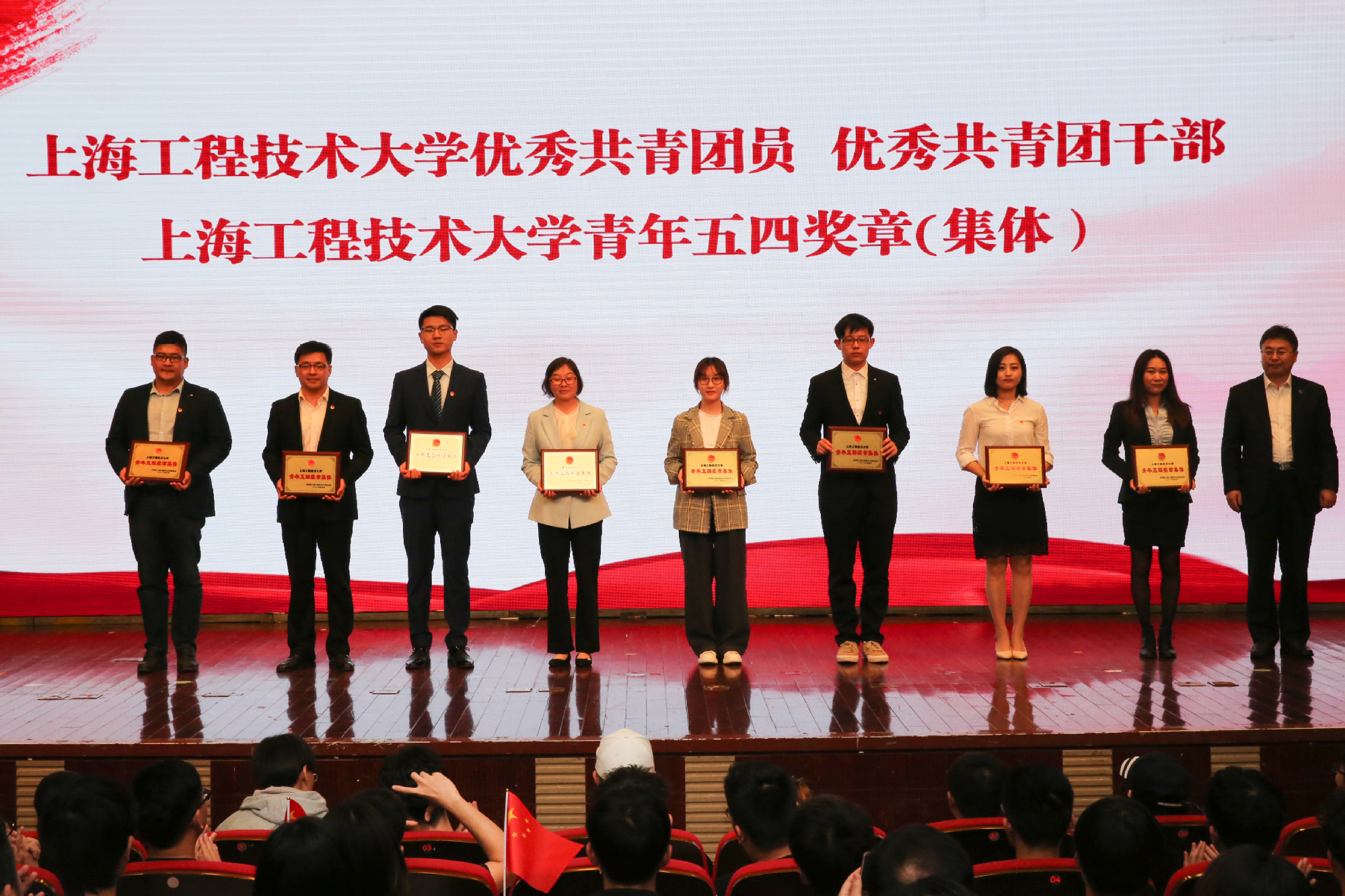在五四运动100周年之际,5月9日下午,学校在图文信息中心志宏堂举行了“青春心向党建功新时代”2019年五四表彰大会。党委书记李江,党委副书记史健勇、鲁嘉华,党委副书记、副校长朱晓青,副校长王岩松出席会议。松江团区委、相关街道团工委,建设银行上海市分行团委负责人,以及即将开展密切工作的江苏宜兴、江苏常熟、浙江海宁等长三角地区的相关负责人,各相关职能处室负责人,各学院党委(党总支)副书记、团委书记以及500余名学生团员代表参加了此次会议。