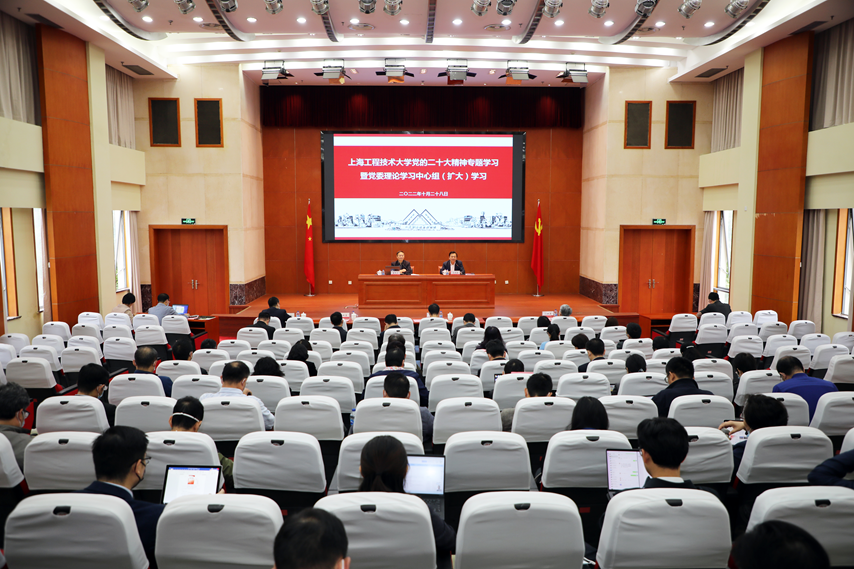 为深入学习贯彻党的二十大精神,10月28日上午,上海工程技术大学党的二十大精神专题学习班在松江校区行政楼B301会议室正式开班。全国五一劳动奖章获得者、市委党校(上海行政学院)袁秉达教授应邀作党的二十大精神专题辅导报告。校党委书记李江,党委副书记、工会主席史健勇,党委副书记、纪委书记门妍萍,副校长王岩松出席学习会。全体中层干部采用线上线下结合方式参加学习。学习会由校党委副书记史健勇主持。