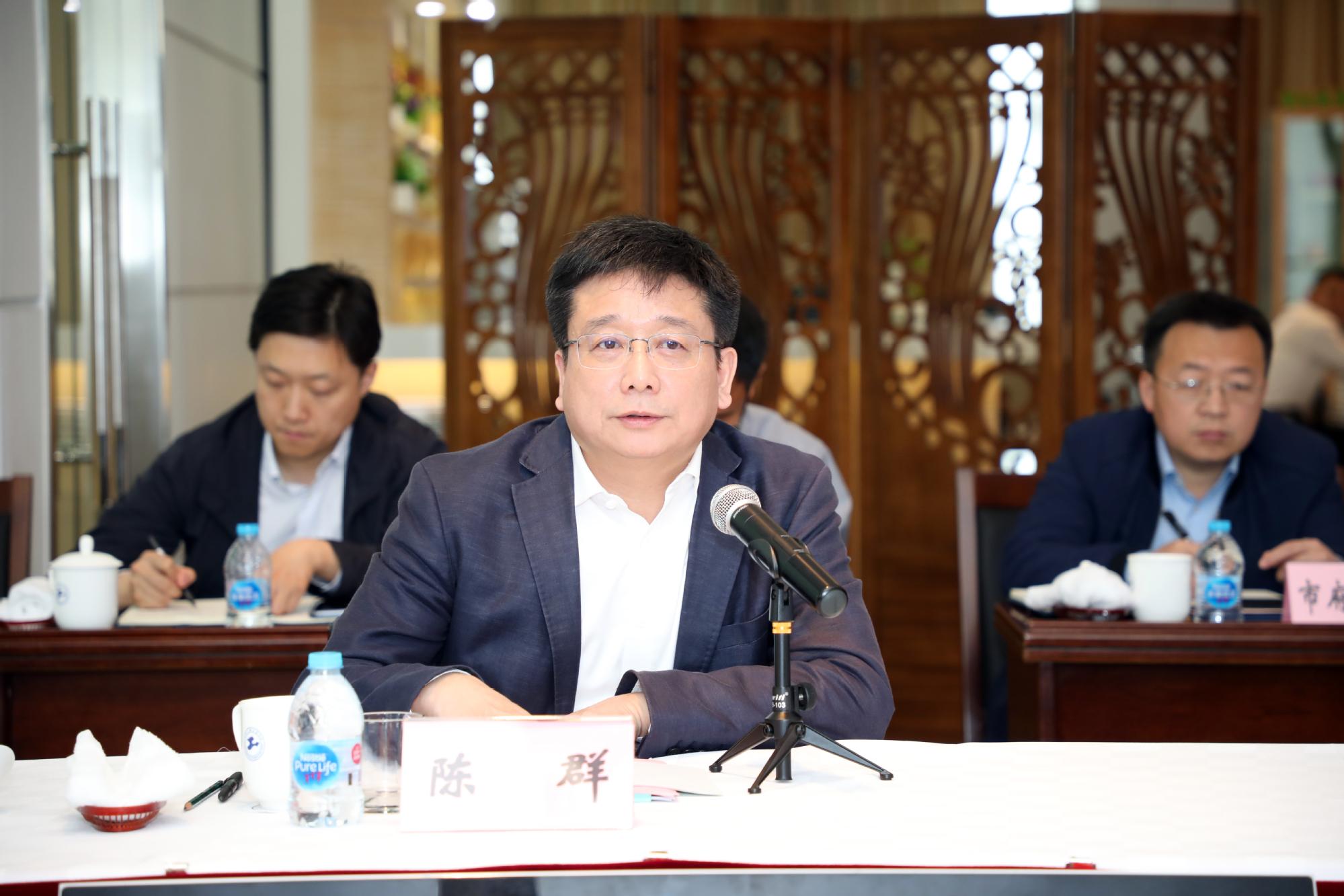 陈群副市长随后主持召开了调研会。他充分肯定了近年来学校在各方面取得的长足进步,尤其肯定了工程大坚持产学研紧密结合,在服务上海地方经济发展方面做出了突出的贡献,希望学校继续保持鲜明的办学特色,按照学校党代会既定目标,建设国内一流的高水平现代化工程应用型特色大学。同时表示,市政府和市教委会一如既往支持学校各方面工作。