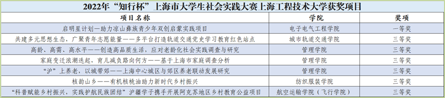 2022年,校团委积极响应团中央、团市委的号召,紧扣“喜迎二十大、永远跟党走、奋进新征程”主题,共组建研学实践队伍181支,累计2000余名程园青年,围绕“知行奋进新征程”“知行乡村振兴”“知行青春战疫”“知行长三角”“知行人民城市建设”等十一个赛道,集中组织开展暑期“三下乡”“返家乡”社会实践活动,其中获得团中央“三下乡”全国重点团队立项项目3项,2022年“知行杯”上海市大学生社会实践大赛一等奖1项、三等奖6项。