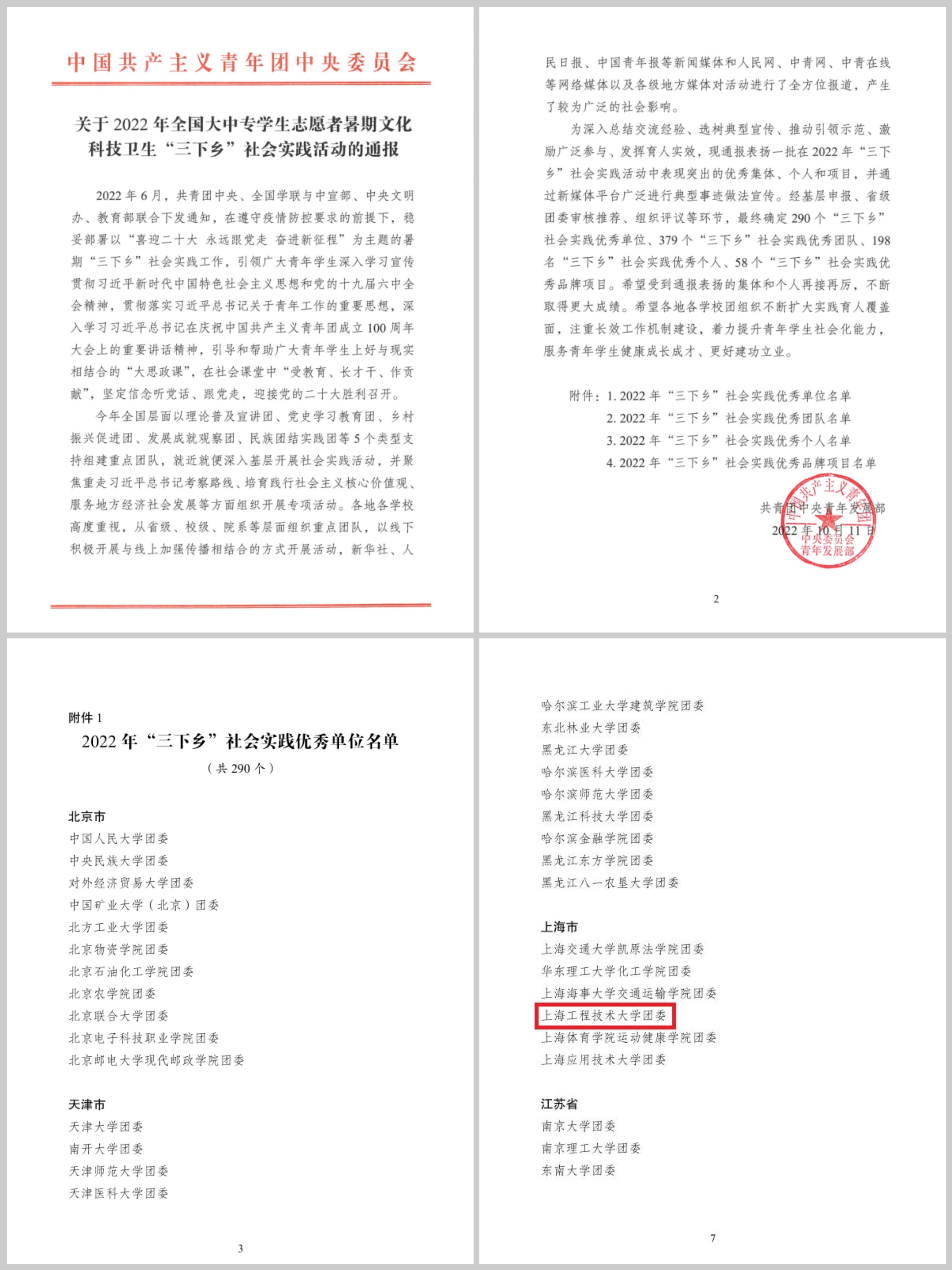 近日,共青团中央发布《关于2022年全国大中专学生志愿者暑期文化科技卫生“三下乡”社会实践活动的通报》,我校团委荣获2022年“三下乡”社会实践优秀单位。