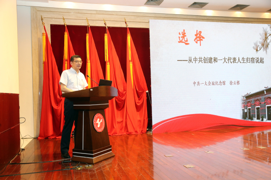 本次毕业生党员集中党性教育活动与中共一大纪念馆合作,引进了《日出东方——近代上海与中国共产党的创建》图片展。会上,中共一大会址纪念馆副馆长、研究馆员徐云根做了“不忘初心”专题微党课,他结合“中共创建和一大代表的人生轨迹”勉励青年党员要坚定理想信念、勤奋不懈、勇于在实践中锻炼成长。
