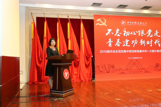 5月30日上午,学校党委在图文信息中心第二报告厅举行“不忘初心跟党走青春建功新时代”2019届毕业生党员集中党性教育暨中共一大图片展开幕式。校党委副书记、副校长朱晓青,中共一大会址纪念馆副馆长、研究馆员徐云根,党委常委、党委组织部部长朱洪春,图书信息档案联合党总支书记李军,特邀党建组织员张健明,中共一大会址纪念馆宣讲员何博恒出席了会议。各学院党委(党总支)书记、组织员、2019届全体毕业生党员参加了本次会议。