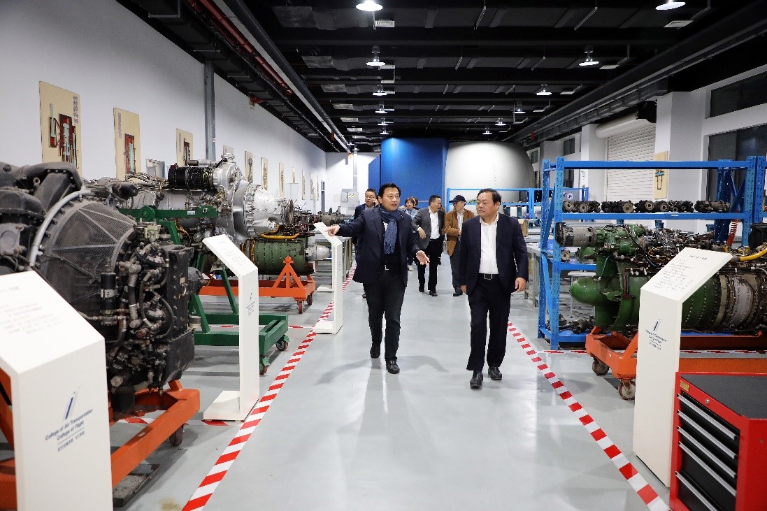 石湖荡镇党政领导班子还先后参观了我校行政楼、航飞楼飞行模拟机训练中心、乘务应急训练厅、5g+人工智能应用创新实验室等。