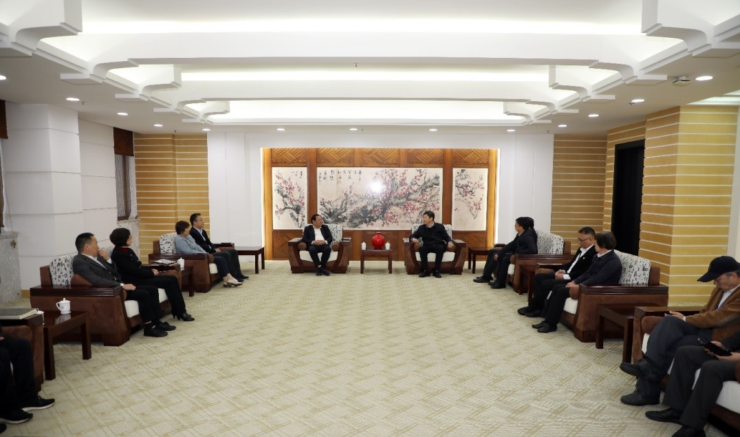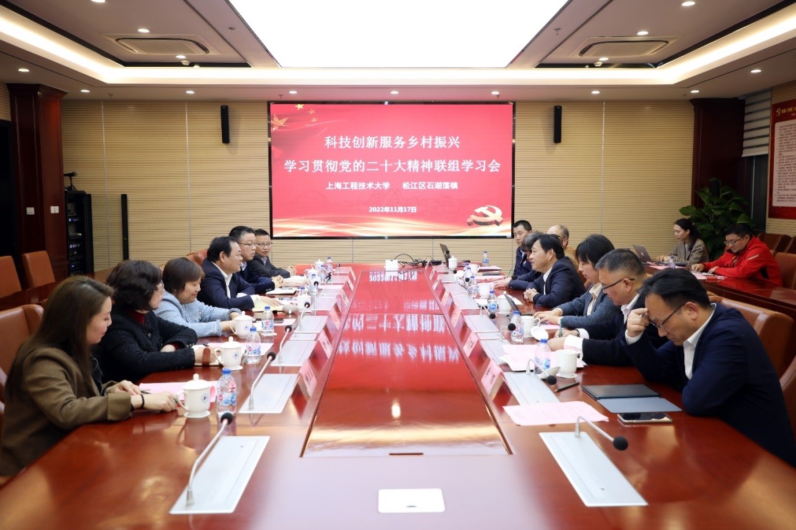 11月17日,松江区石湖荡镇党委书记翁雷均, 党委副书记、镇长陆上达带领镇党政班子来校,与我校管理学院、航空运输学院(飞行学院)开展“科技创新服务乡村振兴”学习贯彻党的二十大精神联组学习。校党委书记李江,校党委副书记、工会主席史健勇亲切接见了石湖荡镇党政领导班子一行。