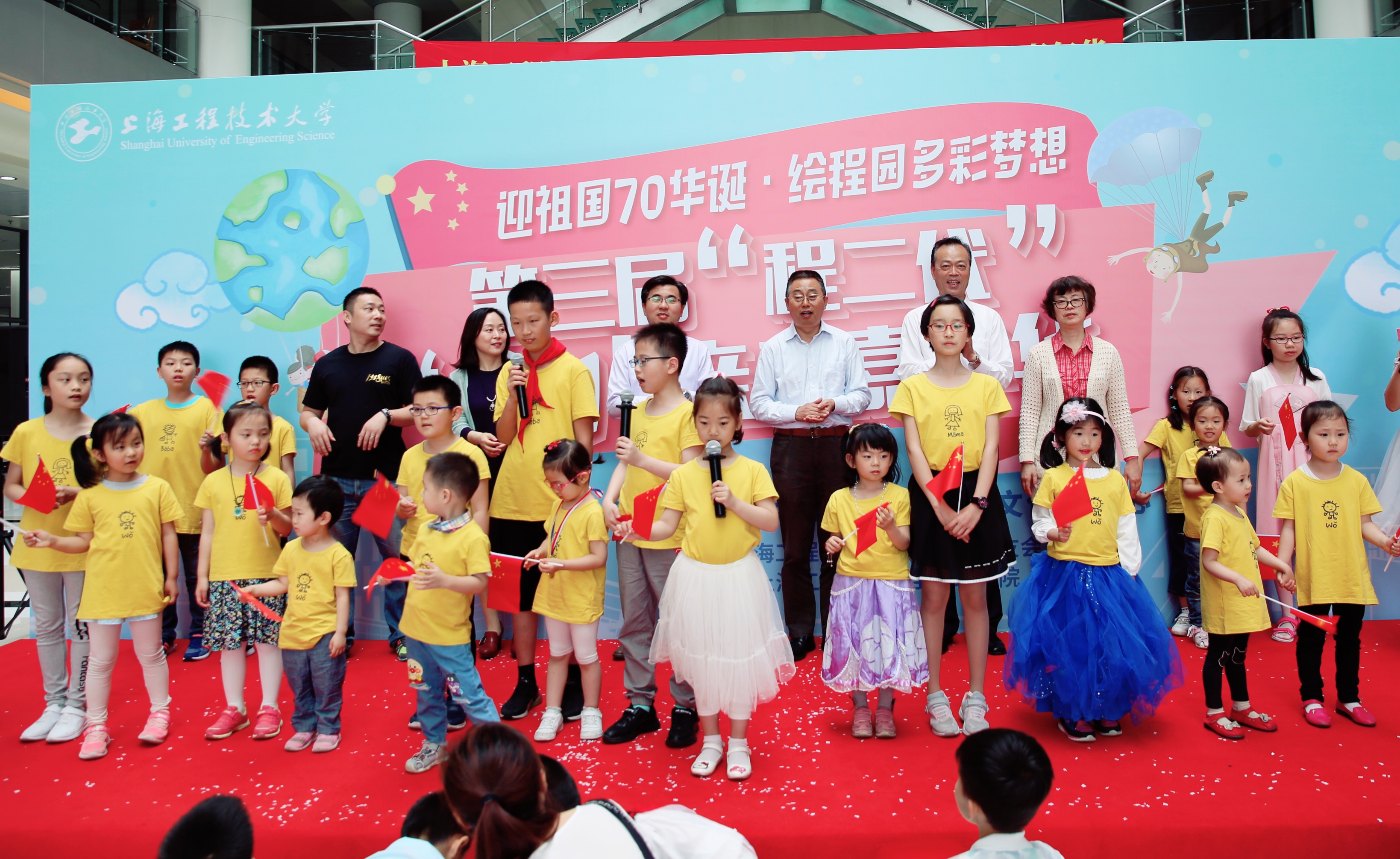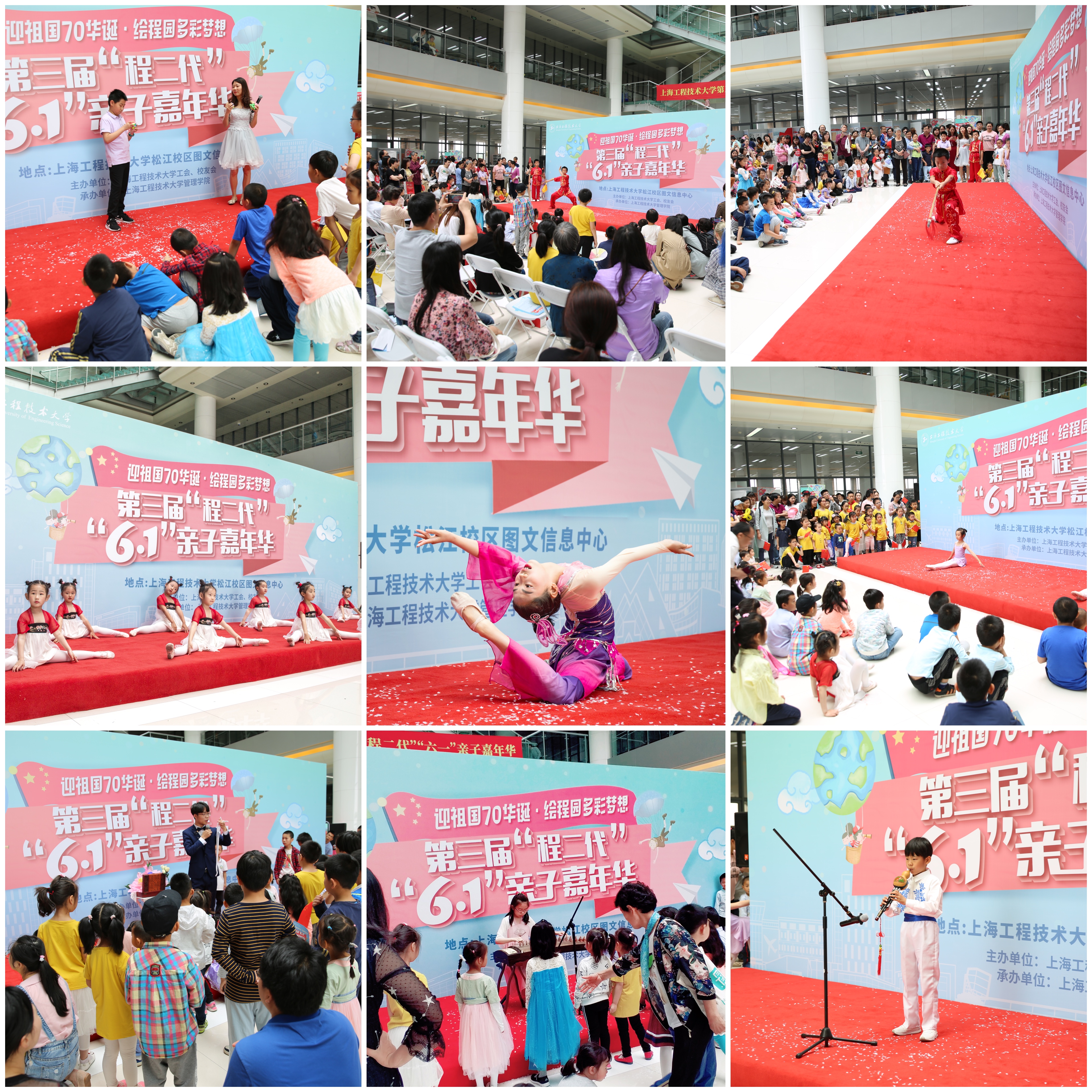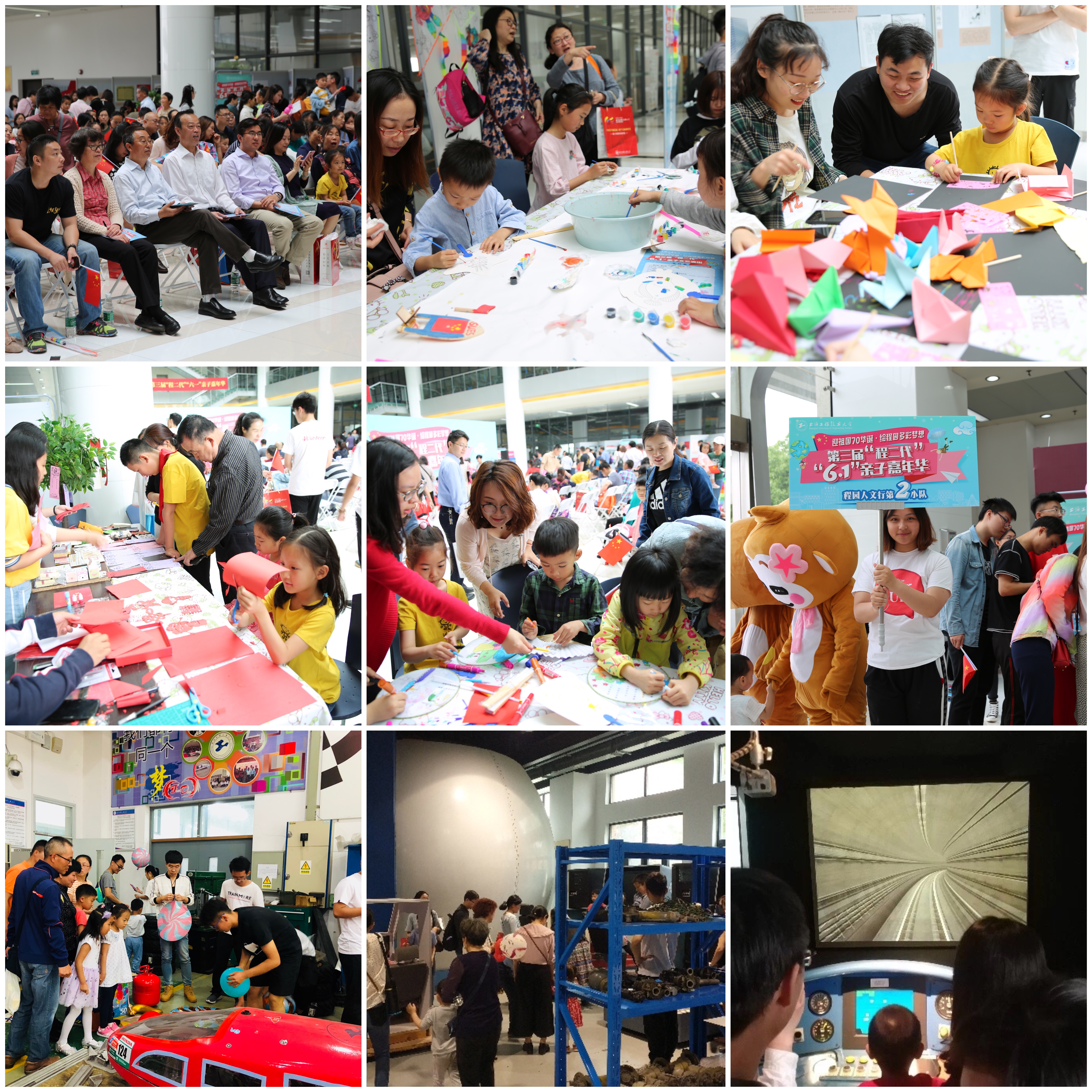 为迎接第70届国际儿童节,献礼祖国70华诞,庆祝学校建校41周年,持续打造有温度的大爱程园,6月1日,由校工会、校友会主办,管理学院工会和校友分会承办,机械与汽车工程学院工会、航空运输学院(飞行学院)工会、城市轨道交通学院工会、团委以及各有关学院校友分会协办的“迎祖国70华诞•绘程园多彩梦想”——第三届“程二代”“六一”亲子嘉年华在我校举行。副校长姚秀平,校工会常务副主席柳如荣,管理学院党委书记周洁,管理学院院长胡斌,校工会副主席李霞、校友会副秘书长周家樑出席活动。此次嘉年华分“表演、体验和程园人文行”三个环节,三大科教基地观摩与专业模拟体验,吸引了学校400个教工和校友家庭共计1500余人参加。