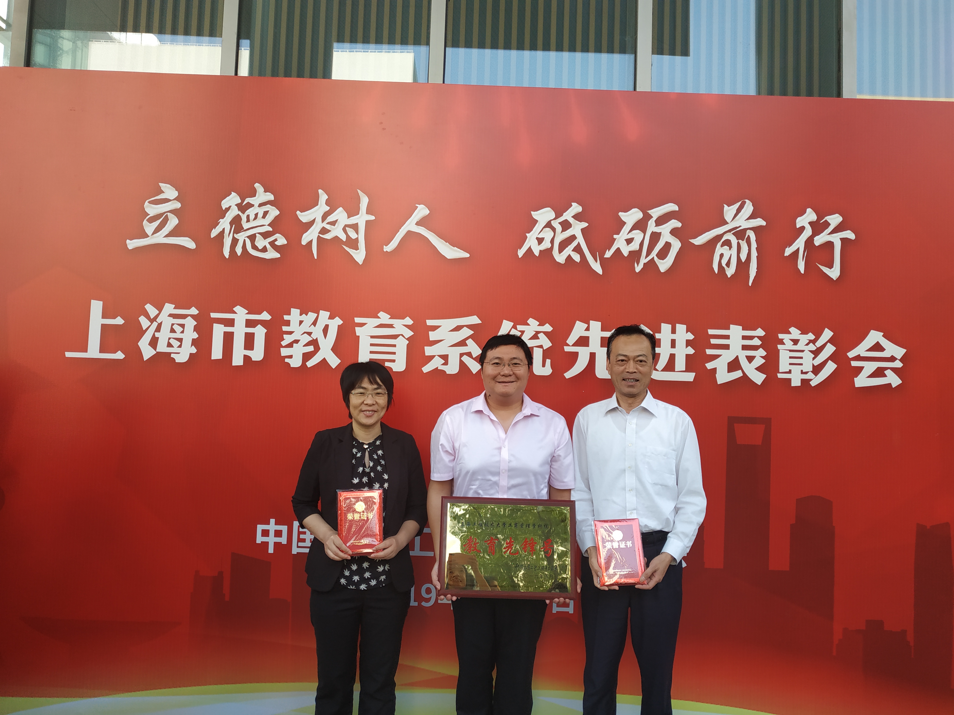 5月31日下午,以“立德树人 砥砺前行”为主题的上海市教育系统先进表彰会在上海科技大学报告厅隆重举行。教育系统的先进集体和个人代表及工会干部350余名参加会议。我校获奖代表参加会议并上台领奖。