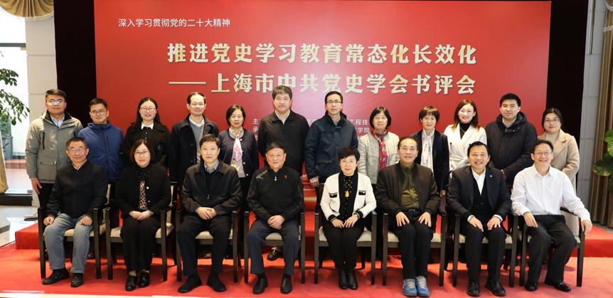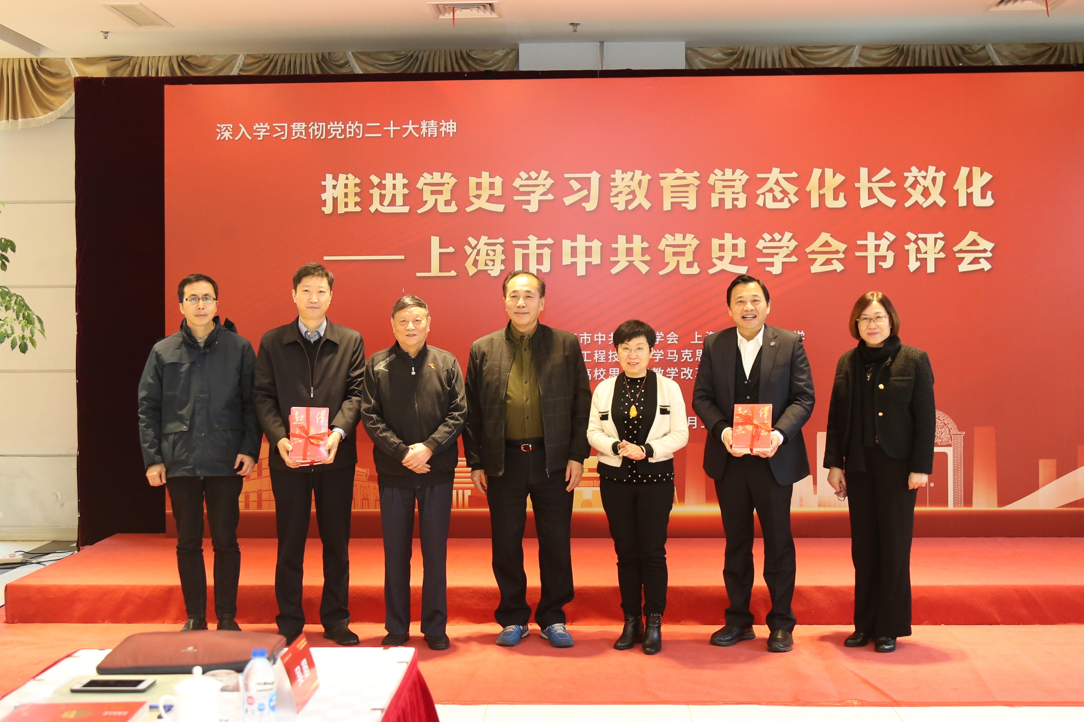 12月3日下午,由中共上海市委党史研究室、上海工程技术大学主办,上海工程技术大学马克思主义学院承办,上海高校思政课教学改革协作组协办的首届上海市中共党史学会书评会在上海工程技术大学举行。校党委书记李江,校党委副书记、工会主席史健勇出席活动。上海市社联副主席、上海市中共党史学会会长、上海大学教授忻平,中共上海市委党史研究室主任、上海市中共党史学会副会长严爱云,中共上海市委党校副校长、上海市中共党史学会副会长梅丽红,上海市中共党史学会名誉会长、国防大学政治学院教授张云,上海市中共党史学会副会长兼秘书长、上海交通大学长聘教授高福进,上海市中共党史学会副会长、华东师范大学马克思主义学院教授丁晓强,中共上海市委党史研究室科研处处长年士萍,中共上海市委党史研究室研究二处处长吴海勇,中共上海市委党史研究室研究二处副处长陈彩琴,上海中医药大学马克思主义学院院长王芳,上海社会科学院历史研究所研究员马军等二十余位专家学者通过线上线下并行的方式参加本次书评会。我校党委办公室主任高锡文,马克思主义学院总支书记董旖旎,马克思主义学院院长刘志欣,马克思主义学院副院长刘芳以及《中国社会科学报》驻上海记者站站长查建国,《解放日报》理论工作室“思想汇”栏目主编王珍,《文汇报》记者单颖文编辑等媒体记者一同参会。我校马克思主义学院在校师生现场旁听了书评会。