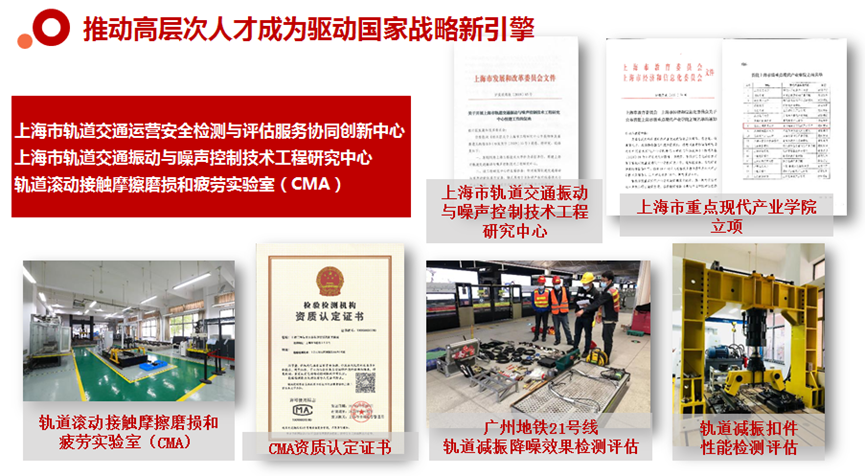 推动高层次人才成为驱动国家战略新引擎。学院高层次人才带头扎根奉献一线,取得系列显著成绩。获批上海市轨道交通振动与噪声控制技术工程研究中心、上海市级重点现代产业学院、轨道交通检测实验室“CMA资质认定证书”。王安斌教授领衔安徽轨道交通研究院建设,以其专利成果转化服务推动长三角高质量一体化发展。牵头负责轨道交通CMA检测实验室建设,已成功为上海、苏州、南京、合肥、温州等地铁公司提供检测与评估服务。圣小珍教授领衔的国家重点研发计划、高铁联合基金项目为高速铁路减振降噪解决了系列技术难题。正是由于高层次人才实干报国的家国情怀、服务社会的高尚品质,王安斌教授荣获2020年“上海市先进工作者”荣誉称号、获批上海市教育系统劳模创新工作室。圣小珍教授连续三年入选中国高被引学者榜单。学院高层次人才引领发展格局初步形成,勇当服务交通强国战略的“排头兵”。