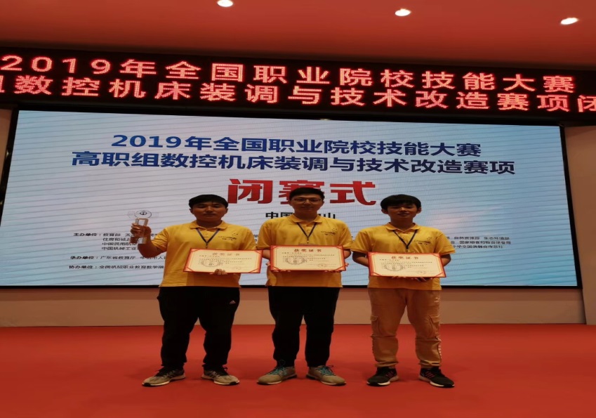 6月13日,全国职业院校技能大赛高职组“数控机床装调与技术改造”项目在广东省中山职业技术学院开赛。经过紧张的角逐,由茹秋生、严龙伟两位指导教师,卜一凡、蔡君毅、周杰三名同学组成的高职学院参赛队伍勇夺高职组该项目团体一等奖。