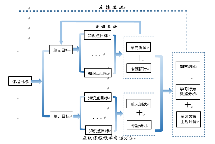 围绕目标达成评价的教学逻辑,建立不同形式、不同内容的考核。以课程目标设置各单元的教学目标,再分解到知识点的教学目标。考核采用“三结合、三递进”的方式,“三结合”即过程与成果相结合、客观与主观相结合、学学与教学相结合,既有覆盖各知识点的单元测试,又有期末课程测试;既有客观测试题,又有主观研讨题;既有学生互评,又有教师学生互评。“三递进”即是从基础知识考核、向应用能力考核、创新能力考核进行递进。单元考核结果可以作为达成情况反馈至各单元的教学目标,课程考核结果加上课程教学评价可作为课程达成情况反馈至课程目标。