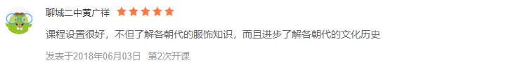 《中国历代服饰赏析》被中国大学mooc平台授予年度“新锐奖”课程开出后收到学习者的广泛肯定: