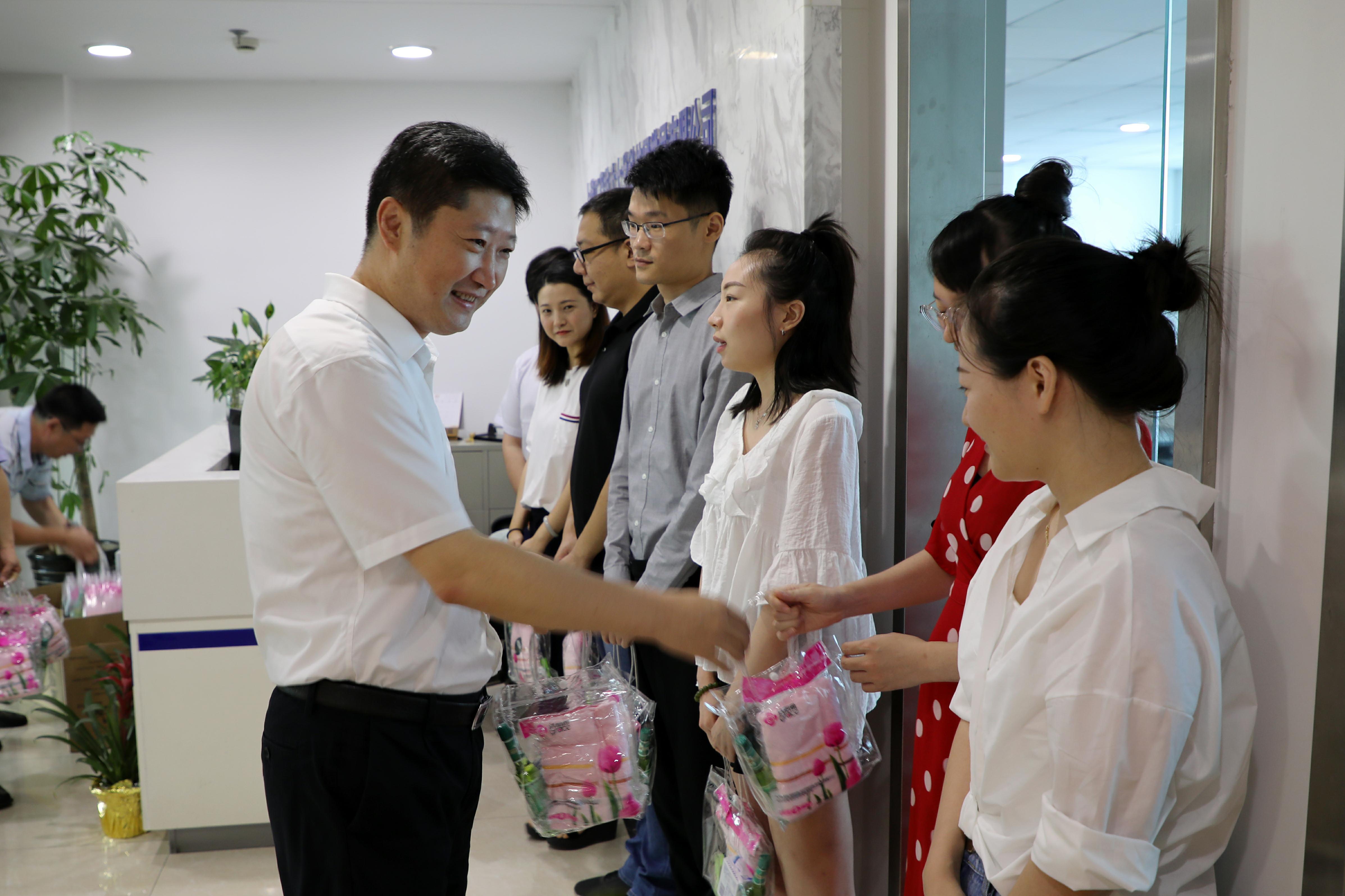 近日,校领导先后走访了松江、长宁、普陀和虹口校区,看望慰问在烈日酷暑中坚守岗位的一线教职工。每到一处,校领导都与在岗员工一一握手并亲切交谈,详细询问暑期工作情况,并再三叮嘱大家认真工作的同时要注意防暑降温,并将 “清凉礼包”送到教职工手中。