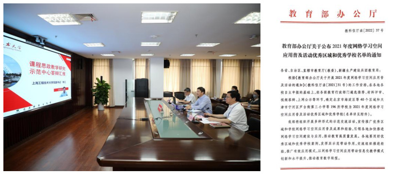 基于学校泛雅网络学习空间和智能教学平台iClass等网络学习空间的良好使用效果和改革成效,学校获评教育部“网络学习空间应用普及活动优秀学校”称号。上海市仅4所高校获此殊荣,我校是上海市唯一获评的市属高校。获批2021年度上海市一流本科课程11门,2022年度市重点课程18门。