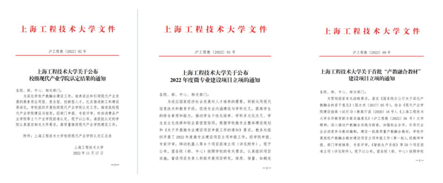 突破传统路径依赖,充分发挥产业优势,进一步落实《上海工程技术大学合作教育新方案》。在总结产学合作教育、卓越工程师培养经验的基础上,传承创新,通过强化激励、重点培育等措施,高标准建设现代产业学院。获批市级重点现代产业学院1个,推荐工信部“专精特新”产业学院1个,认定校级现代产业学院2个。