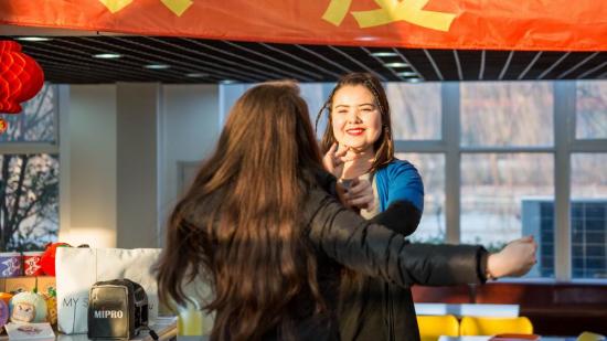 校领导们携手相关部门负责人向留校学生送上最真切的祝愿,并为每一位同学送上了节日的红包和新春大礼包,并叮嘱同学们寒假期间要注意身体,记得给家人送祝福。来自不同学院的50多名留校学子与校领导们共话家常,欢声笑语,其乐融融。活动在同学们自告奋勇的表演中持续升温,首先,来自社科学院的新疆少数民族阿丽米热木带来新疆舞蹈《回家》,让在场的师生们感受到了异域风情,少数民族同学们说:“这是我们第一次在学校体验传统意义上的新年,有一种很温馨,