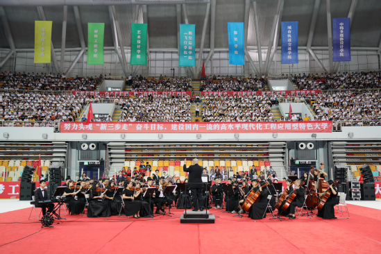 开学典礼上,团委和学生处还联手为新同学送上精彩的演出,大气磅礴的管弦乐合奏《第一交响曲节选》、讲述我校历史发展的音诗画《思源致远》、颇具特色的大学生讲思政《新时代轨道说》以及新生辅导员献歌《我的未来不是梦》,全面展现了我校师生积极向上的精神风貌。