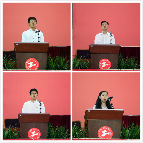 本科生新生代表、航空运输学院(飞行学院)学生汤喆同学分享了他的追梦故事,从小梦想飞上蓝天的他,终于在工程大圆梦起飞。研究生新生党员代表、机械与汽车工程学院施浩然同学勉励自己和同学们,要不忘初心,在迷茫中坚定信仰,在实践中践行使命,在奋斗中实现价值。留学生新生代表、来自管理学院的蒙古留学生宝力嘎讲述她的中国情缘,她希望在国际化的工程大增长才干,日后为中蒙交流作出贡献。