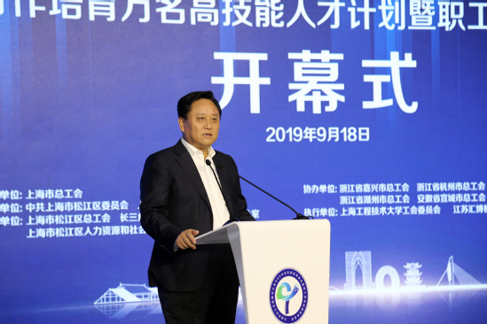 9月18日上午,长三角G60科创走廊九城市校企合作培育万名高技能人才计划暨职工劳动技能竞赛开幕式在我校图文信息中心志宏堂举行。上海市人大常委会副主任、市总工会党组书记、主席莫负春,松江区委书记程向民,区人大常委会主任唐海东,区政协主席刘其龙,上海工程技术大学副校长夏春明,上海市总工会副主席周奇,松江区副区长陈晓军参加开幕式,同时参加开幕式和比赛的还有来自上海(松江)、杭州、合肥、嘉兴、湖州、金华、苏州、芜湖、宣城等九城市的工会干部、领队和参赛选手共计600余人。