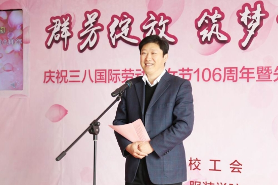 校党委书记李江以“祝贺、分享、共商”为题发表讲话。他向受表彰的先进个人和家庭表示热烈的祝贺,并向出席会议的女性代表以及全校广大女教职工致以节日问候和美好祝愿,期望广大妇女同胞继续投身学校“十三五”,建功立业。李江书记对学校未来妇女工作提出四点希望:第一成绩鼓舞人心,未来催人奋进;第二党政群妇共建,带红“半边天”;第三贯彻群团精神,做好“娘家人”;第四巾帼亦有须眉志,妇女就是半边天。
