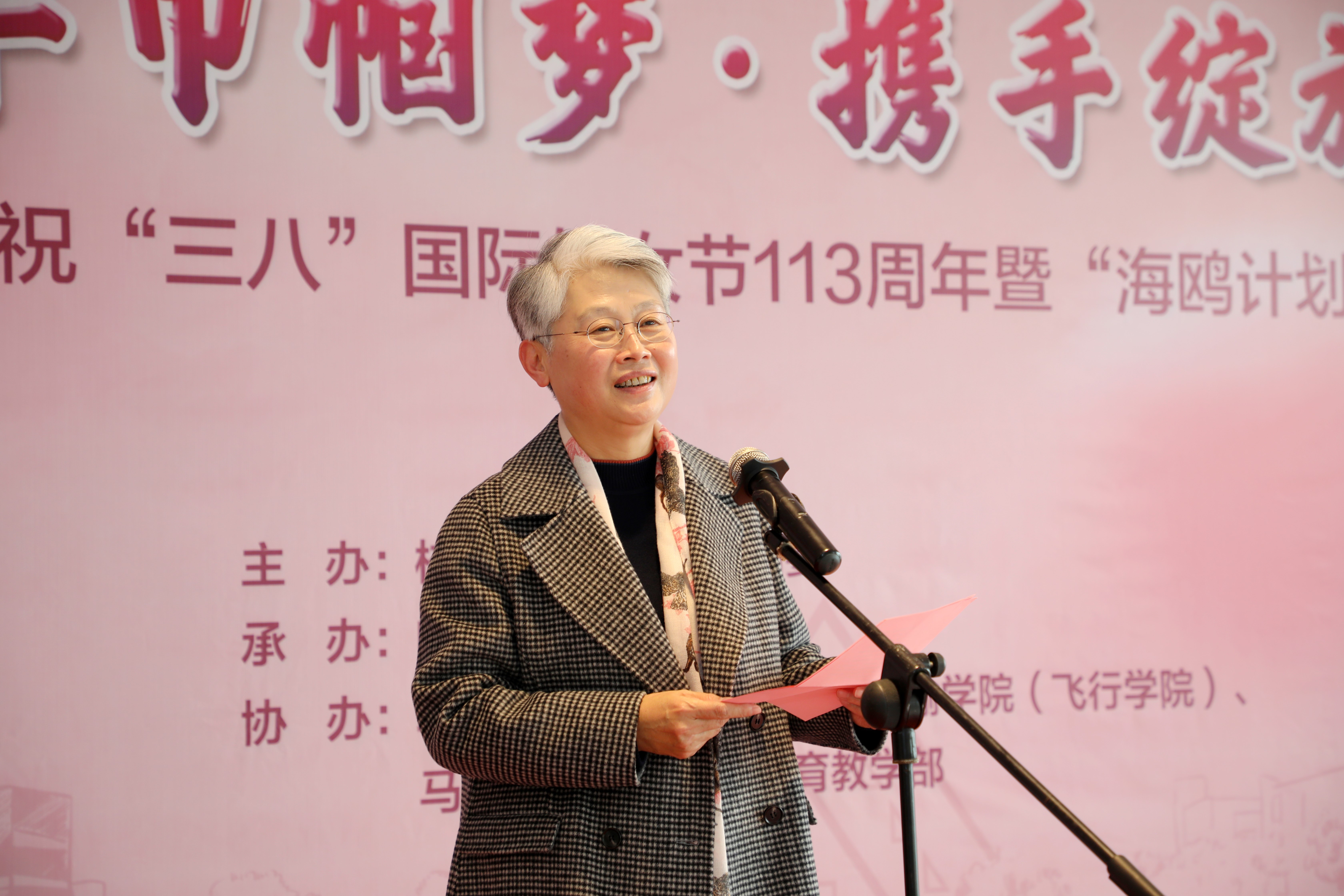 上海市三八红旗集体负责人、上海市教育系统巾帼建功标兵、航空学院党淑雯老师,马克思主义学院学生史奕潼,上海市女企业家协会副会长、海鸥计划负责人蔡婷分别从各自的工作、学习以及上海市海鸥计划等方面作了分享,女教师、女大学生、女企业家携手绽放“她”力量,激励了广大女教职工、女大学生继续前行、勇敢拼搏!
