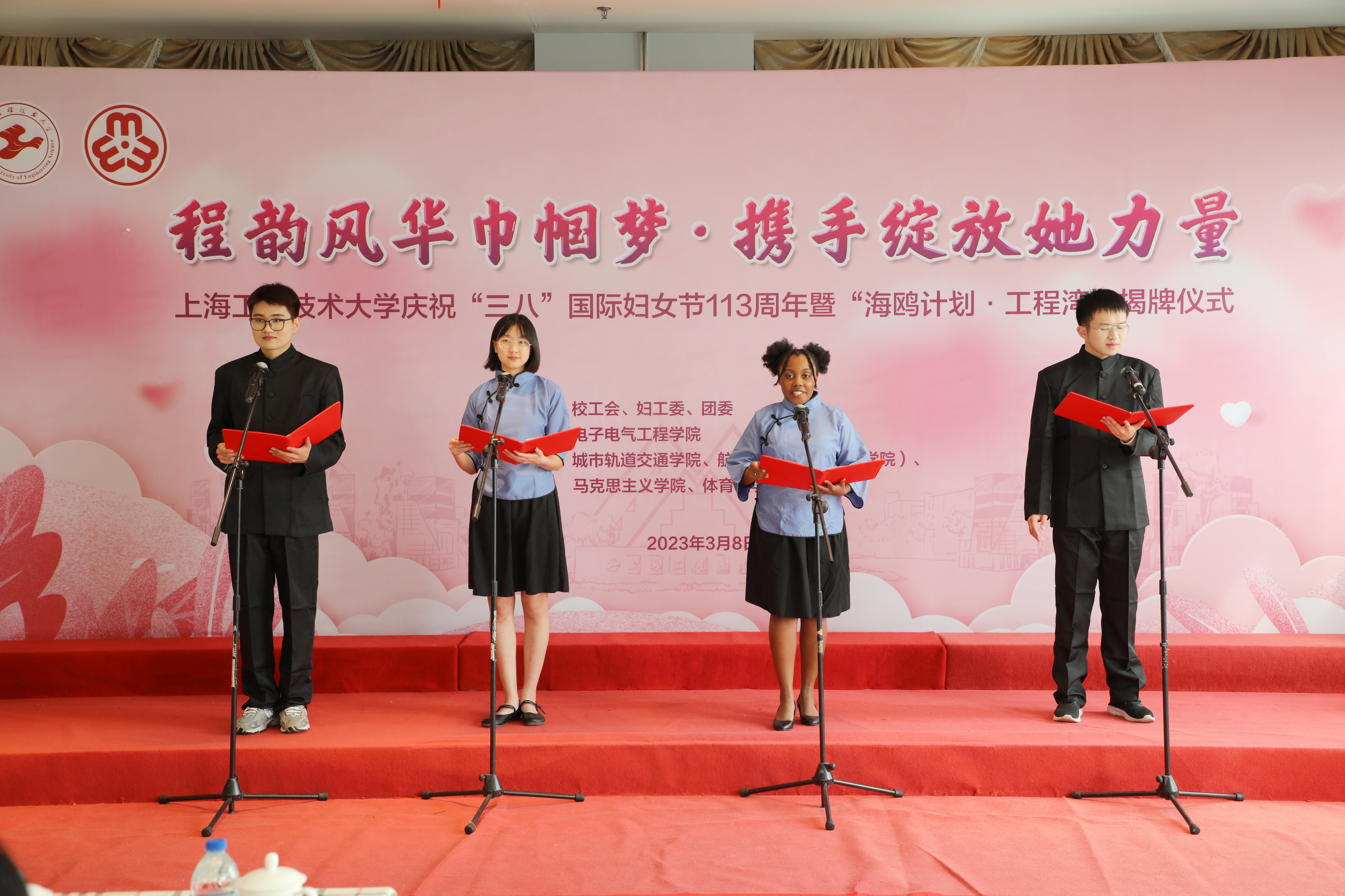 阳春三月,草木蔓发。3月8日下午,我校纪念三八国际劳动妇女节113周年暨“海鸥计划 工程湾揭牌仪式”在行政楼19楼温情举行。校党委副书记、纪委书记门妍萍,党委副书记、副校长、妇工委主任朱晓青,校党委常委、组织部部长朱洪春,上海市教育系统妇工委副主任张芳,上海市女企业家协会副会长蔡婷,上海市女优青联谊会秘书长、校女教授女干部联谊会副会长叶晓娴,有关职能部处负责人,院部党政负责人代表,女教授、女干部联谊会代表,妇工委、女工委委员,教师代表及女大学生代表共计200余人参加活动。