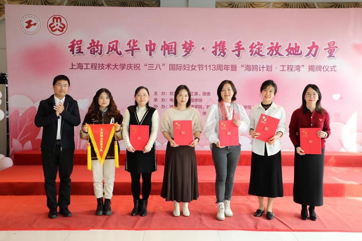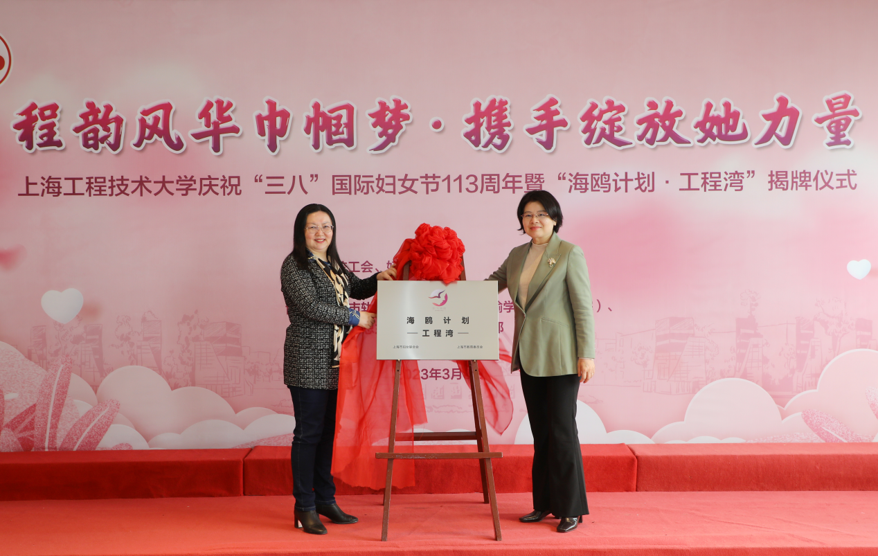 校党委副书记、副校长、妇工委主任朱晓青,上海市教育系统妇工委副主任张芳,共同为“海鸥计划·工程湾”揭牌。