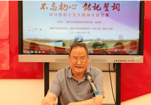 虽然离开了工作岗位,但是三位老同志仍牢记使命,发挥余热,为学校的发展和社会的进步贡献着自己的力量。年逾九旬的施有奇同志还经常为年轻人讲党课,他说:“我们学习就为了能够更好地建设国家,只有国家强起来了,人民才会有骨气会硬气。我们今天在社会主义道路上砥砺前行,努力奋斗,不愧对于先烈所留下的鲜血。”姜保年同志离休后,笔耕不辍,她说:“我想把老一辈和我这一代知识分子热爱祖国、为祖国奋斗的优秀品质,记录下来,传承下去。我们都在努力学习习近平新时代中国特色社会主义思想,在伟大祖国强起来的进程中,作一点微簿的贡献。”60余年党龄的陆新葵同志是学校退休教工第十党支部里以为德高望重的老党员,虽已进入耄耋之年,身体不佳,但每次支部活动他必定参加,总是将自己的经历讲述给大家听,不断鼓励支部党员们珍惜现在的美好生活,发挥党员的先锋模范作用。