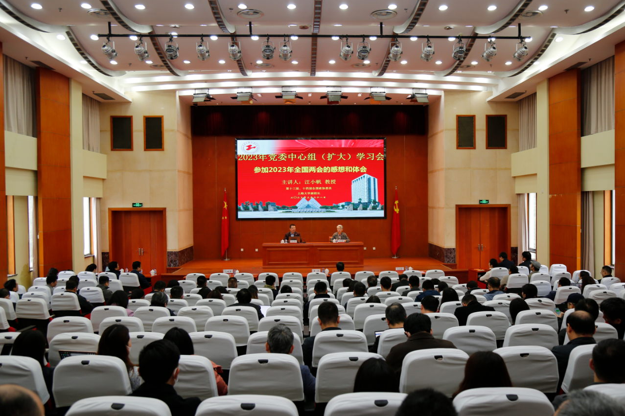 3月21日下午,校党委理论学习中心组举行集体(扩大)学习会,传达学习十四届全国人大一次会议和全国政协十四届一次会议精神。第十三届、十四届全国政协委员、上海大学副校长、上海中青年知识分子联谊会副会长汪小帆教授应邀作“踏上新征程,奋楫再出发——参加2023年全国两会的感想和体会”专题辅导报告。全体校领导及中层干部、党支部书记、辅导员参加会议,会议由校党委副书记、纪委书记门妍萍主持。