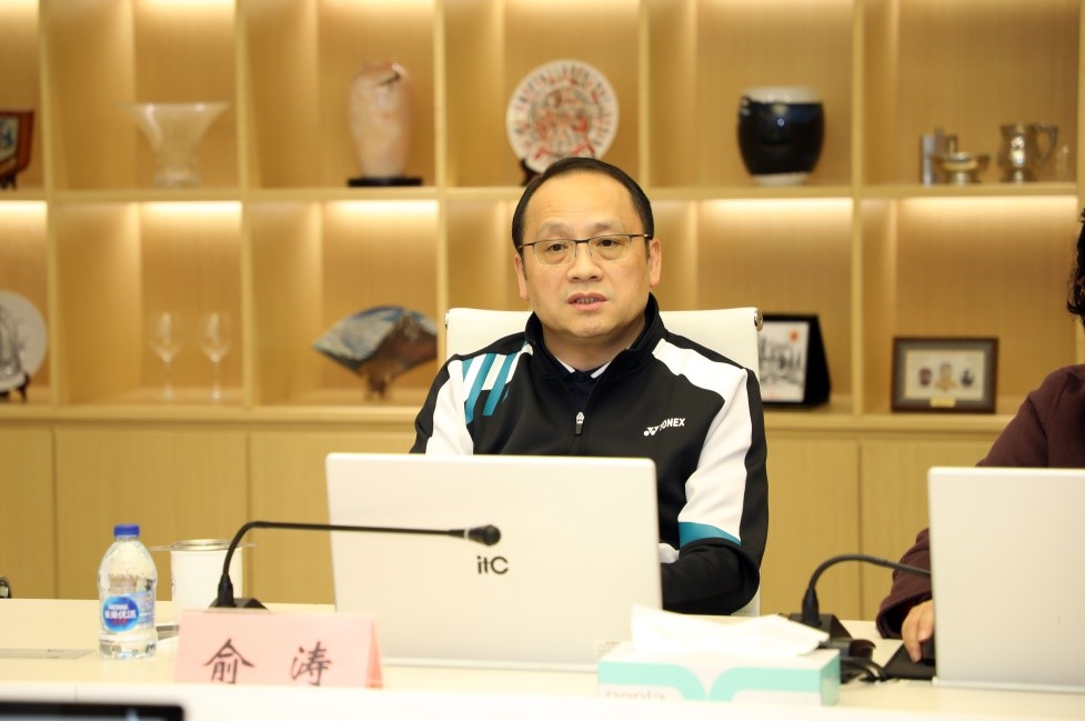 薛明扬会长对学校赛事筹备工作提出了针对性的建议。他指出,一是要进行专业调研和论证,确保体育场馆符合国际赛事的标准要求;二是加强与松江区人民政府的沟通,确保赛事在交通、食宿、安全和文化体验方面得到当地政府的全方位支持;三是要精心筹划,多方筹措,保障赛事的经费投入。