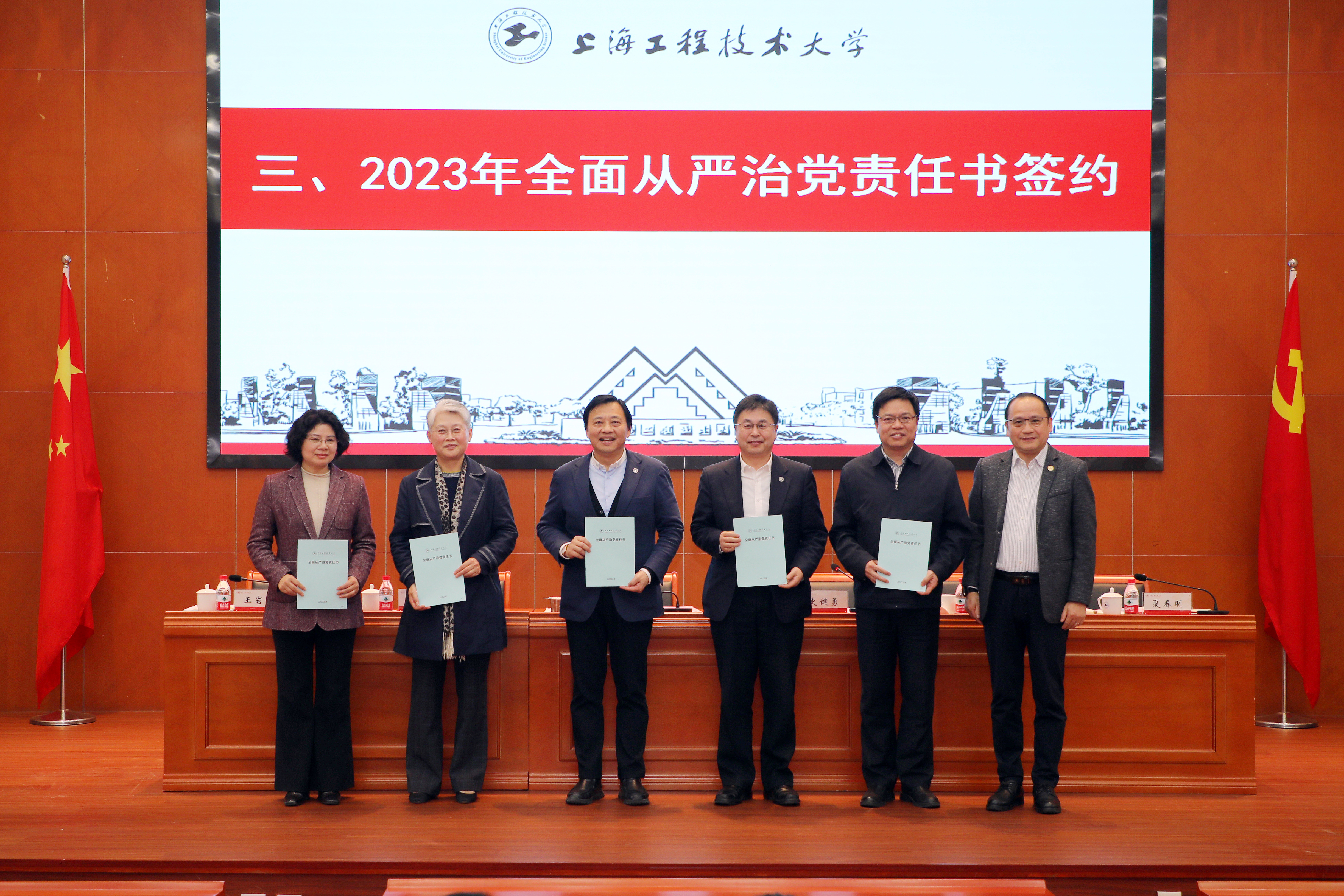 会上,学校举行了全面从严治党责任书签约仪式。校领导正职与副职,全体校领导与机关部处长、直属单位负责人、学院书记和院长代表分别签约并颁发了2023年学校全面从严治党责任书。