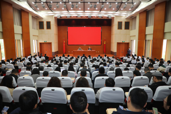 4月14日上午,上海工程技术大学召开学习贯彻习近平新时代中国特色社会主义思想主题教育动员大会,认真落实中央、市委和市教卫工作党委主题教育工作决策部署,对学校深入开展主题教育进行动员部署。校党委副书记、校长、学校主题教育领导小组副组长俞涛同志主持会议,并受校党委书记、学校主题教育领导小组组长李江同志委托作动员讲话。市委主题教育第十八巡回指导组副组长、原上海电力学院党委副书记李国荣同志作指导讲话。市委第十八巡回指导组成员,全体校领导、主题教育办公室成员、全体中层干部、二级党组织组织委员、组织员、离退休老同志代表、教授党员代表、党支部书记代表、师生党员代表等参加会议。