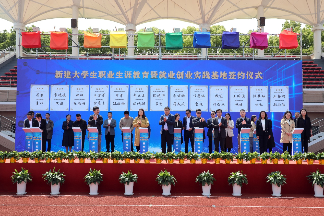 各二级学院党政负责人与企业代表共同签订了大学生职业生涯教育暨就业创业实践基地共建协议。