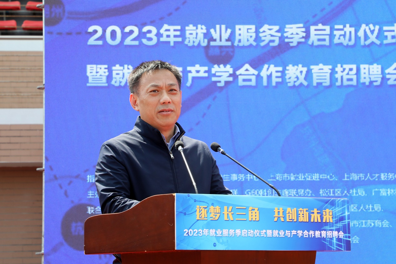 为深度服务长三角一体化高质量发展,积极打造“协同育人共同体”,全力推动毕业生高质量充分就业,4月27日下午,由上海市教委学生处、上海市学生事务中心、上海市就业促进中心、上海市人才服务中心指导,我校与松江区工商联、G60科创走廊联席办、松江区人社局、广富林街道联合主办,上海市部分区人社局、上海市江苏商会、上海市浙江商会、上海市安徽商会、上海市山东商会、上海市云南商会协办的“逐梦长三角 共创新未来”2023年就业服务季启动仪式暨就业与产学合作教育招聘会在松江校区西体育场举行。