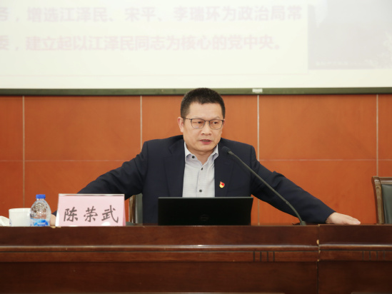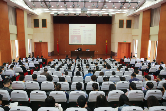 为深入推进“不忘初心、牢记使命”主题教育,全面贯彻中国共产党第十九届中央委员会第四次全体会议精神,加强党的政治建设,11月7日上午,校党委中心组在行政楼B301会议室举行扩大专题学习会。会议邀请上海市社会主义学院党建与社会治理创新研究中心主任、上海市党建研究会特邀研究员、上海市马克思主义研究会理事陈荣武教授解读党的十九届四中全会精神。校党委中心组成员、中层干部、支部书记、机关科级以上干部、辅导员和离退休党务工作干部300余人参加会议,学习会由党委副书记、副校长朱晓青主持。学校在长宁校区、虹口校区设立分会场,同步直播学习会全过程。