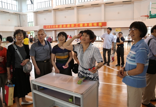 校党委副书记、校工会主席、校退管会主任夏斯云宣布2016年退休教职工健身趣味活动开幕。夏斯云副书记在讲话中衷心感谢老同志们对学校一如既往地关心和支持,2016年是学校“十三五”规划开局之年,在学校党政领导下,全校师生员工按照上级部门的工作要求和文件精神,积极开展“两学一做”学习教育,真抓实干,为建设更美丽和谐的工程大而努力奋斗。老同志们饶有兴趣地参加了猜谜语、神投飞镖、欢乐搓铃,开心套圈、巧手挟玻璃球、象棋围棋、钓鱼、投球入桶、滚铁圈等各项趣味活动。为增添活动的乐趣,趣味赛还准备了抽奖环节,活动现场气氛活跃,其乐融融。