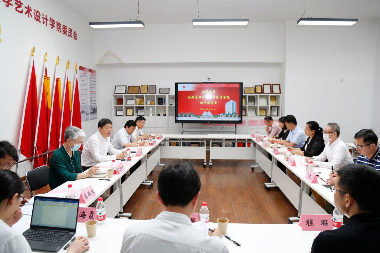 为深入开展学习贯彻习近平新时代中国特色社会主义思想主题教育,深入一线开展调查研究,聚焦破解难题推动工作。6月1日下午,校党委书记李江,党委副书记、工会主席史健勇,党委副书记、纪委书记门妍萍,党委常委、组织部部长朱洪春,赴艺术设计学院开展主题教育调研。主题教育领导小组办公室部分成员,艺术设计学院全体班子成员参加调研。校党委副书记史健勇主持调研会。