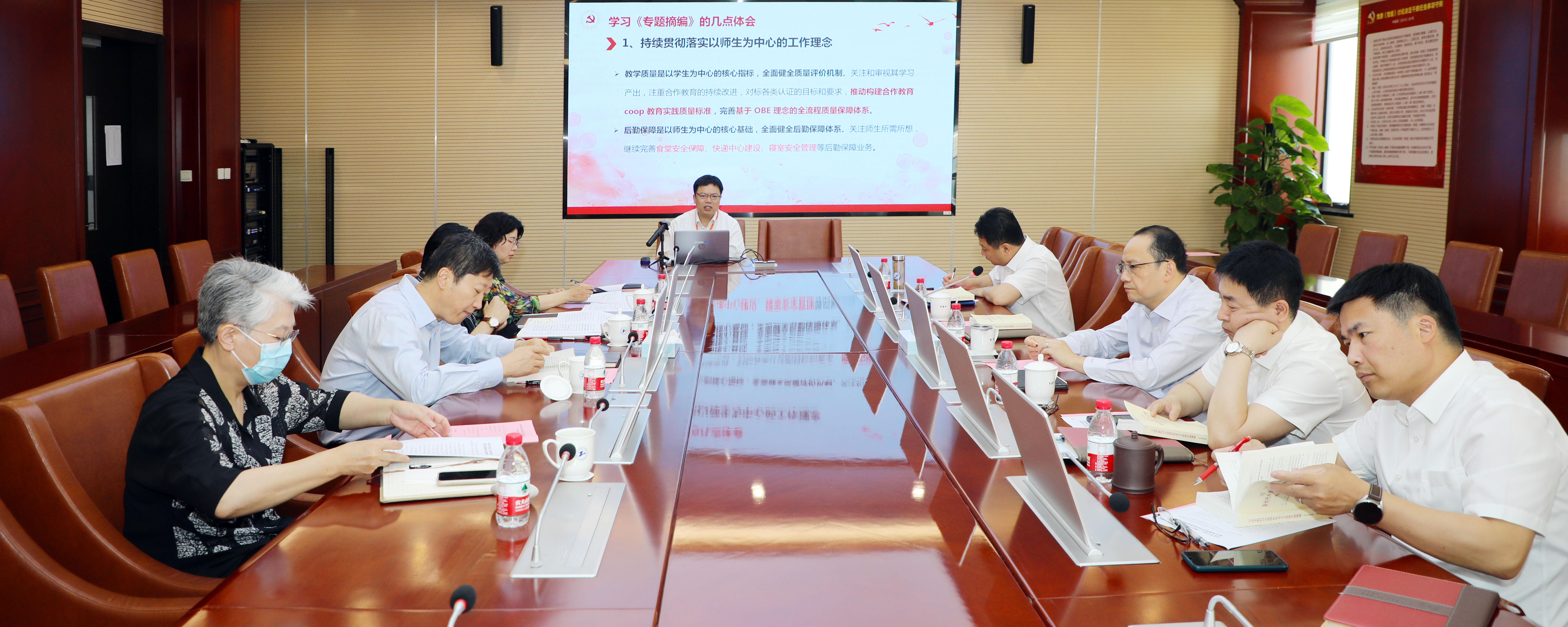 校党委副书记史健勇,校党委副书记、副校长朱晓青辅学。校领导班子成员结合1+3+X述学要求进行交流研讨。