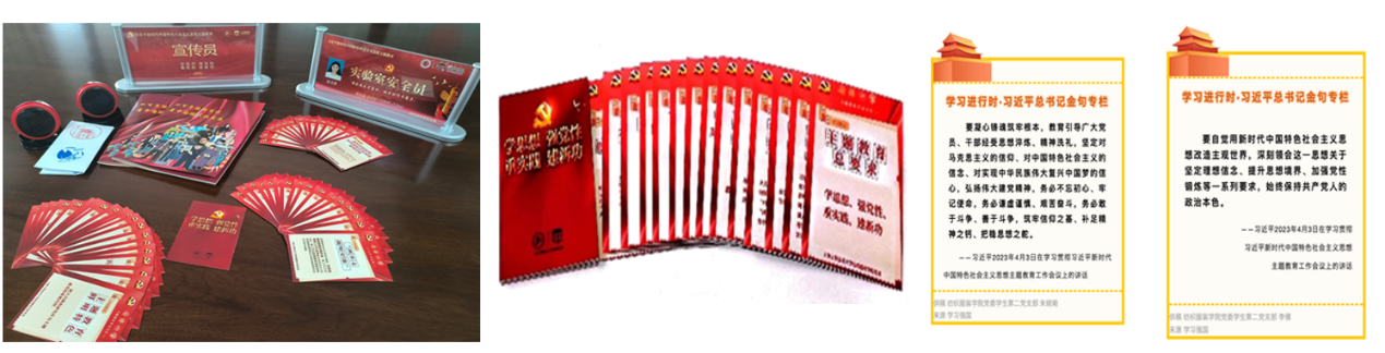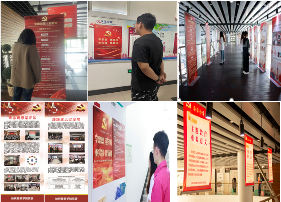 线上线下齐发力 ,打造红色学习场域,营造良好氛围。学院在公众场所、重要区域张贴主题教育海报,让党员群众抬头即见、停足即学,潜移默化中助推主题教育入脑入心。丰富学习载体,通过学院党委微信公众号陆续发布推文64篇,用文字、视频、图片等形式,引导全体党员随时学、交互学、实时学,拓展主题教育学习覆盖面,系列“主题教育·纺服青年说”线上发声,让主题教育学习有声有色。